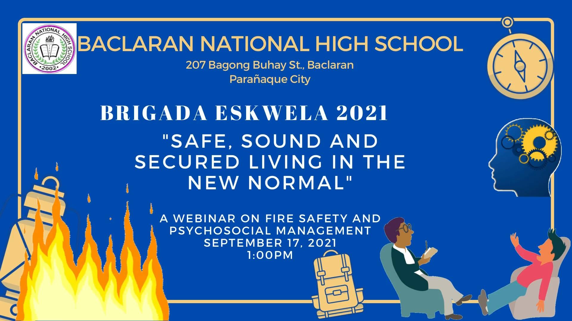BRIGADA ESKWELA 2021 WEBINAR SERIES “Safe, Sound and Secure Living in the New Normal” A webinar on Fire Safety and Psychosocial Management, September 17, 2021 at 1:00 PM.